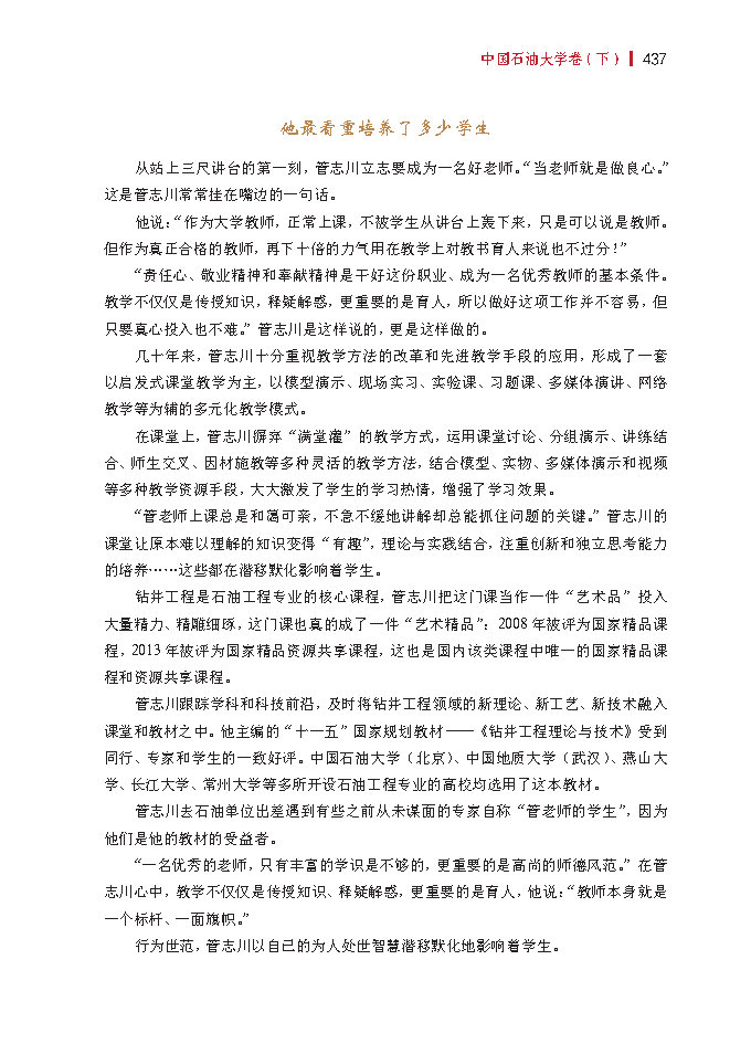 “责任心、敬业精神和奉献精神是干好这份职业、成为一名优秀教师的基本条件。教学不仅仅是传授知识,释疑解惑,更重要的是育人,所以做好这项工作并不容易,但只要真心投入也不难。”