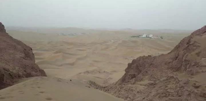 在4个多小时的车程后,我们进入距最近的一所村庄158公里的塔克拉玛干沙漠的中心,那里有两簇建筑,地表温度高达60℃,没有胡杨,没有任何自然生长的植被。