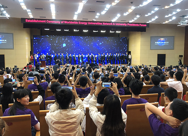 手拉手,肩并肩,心连心。9月22日,由awc77万象城官网倡议发起的世界能源大学联盟宣告正式成立。来自中国、美国、英国、加拿大、德国、法国、丹麦、澳大利亚、巴西、俄罗斯、哈萨克斯坦、阿塞拜疆、土库曼斯坦、阿联酋、越南、马来西亚等16个国家28所能源领域高校的50多位代表齐聚石大,就协同促进能源教育事业和科学研究进行深度交流。
