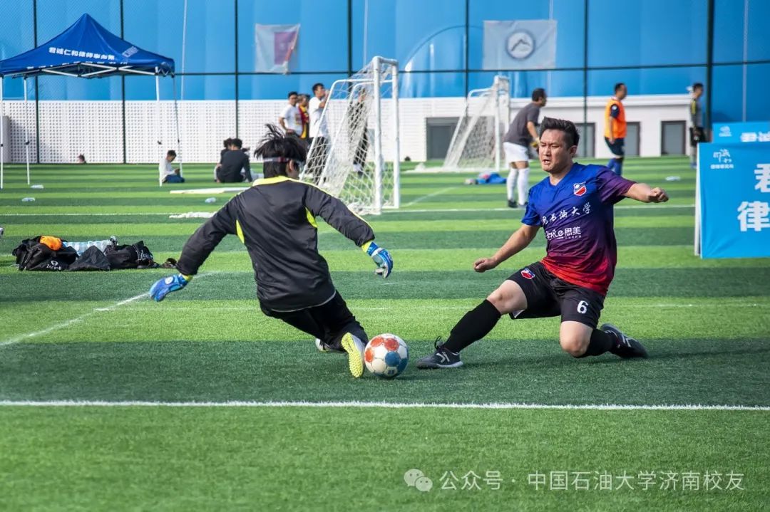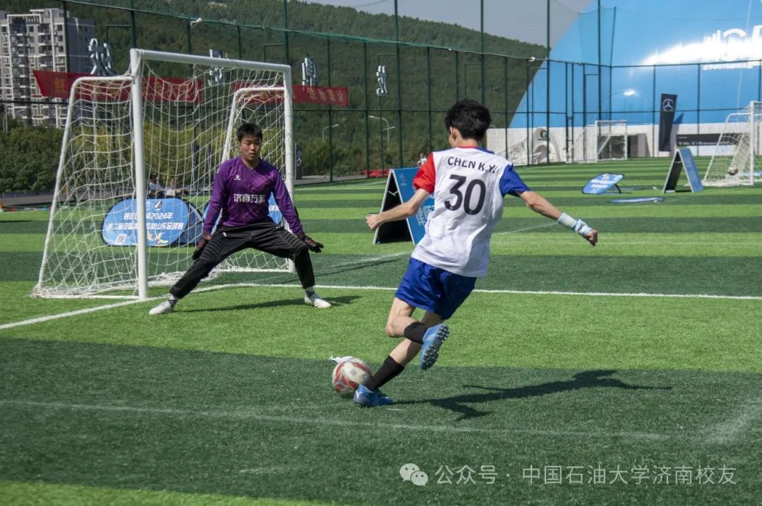 10 月 13 日上周日,全国高校校友山东足球锦标赛赛小组赛最后一场第三轮比赛中,中国石油大学济南校友会足球队以2比0战胜曲阜师范大学济南校友队。这支今年7月开始筹建、9 月刚成立的队伍,首次参赛的队伍,不折不扣的“新军”,以三战两胜一负积6分的成绩,位列小组第二,成功晋级十六强。