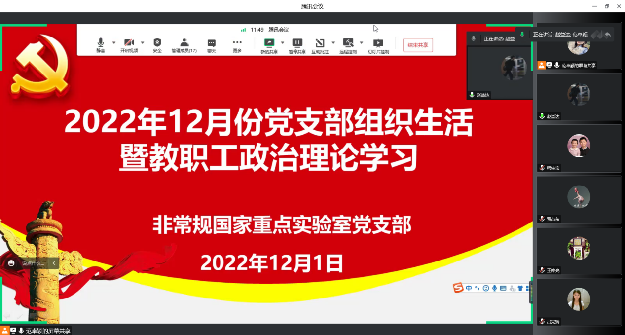 2022年12月1日下午,党支部组织全体党员及全体教职工通过腾讯会议线上直播方式,进行政治理论学习以及党支部组织生活会。