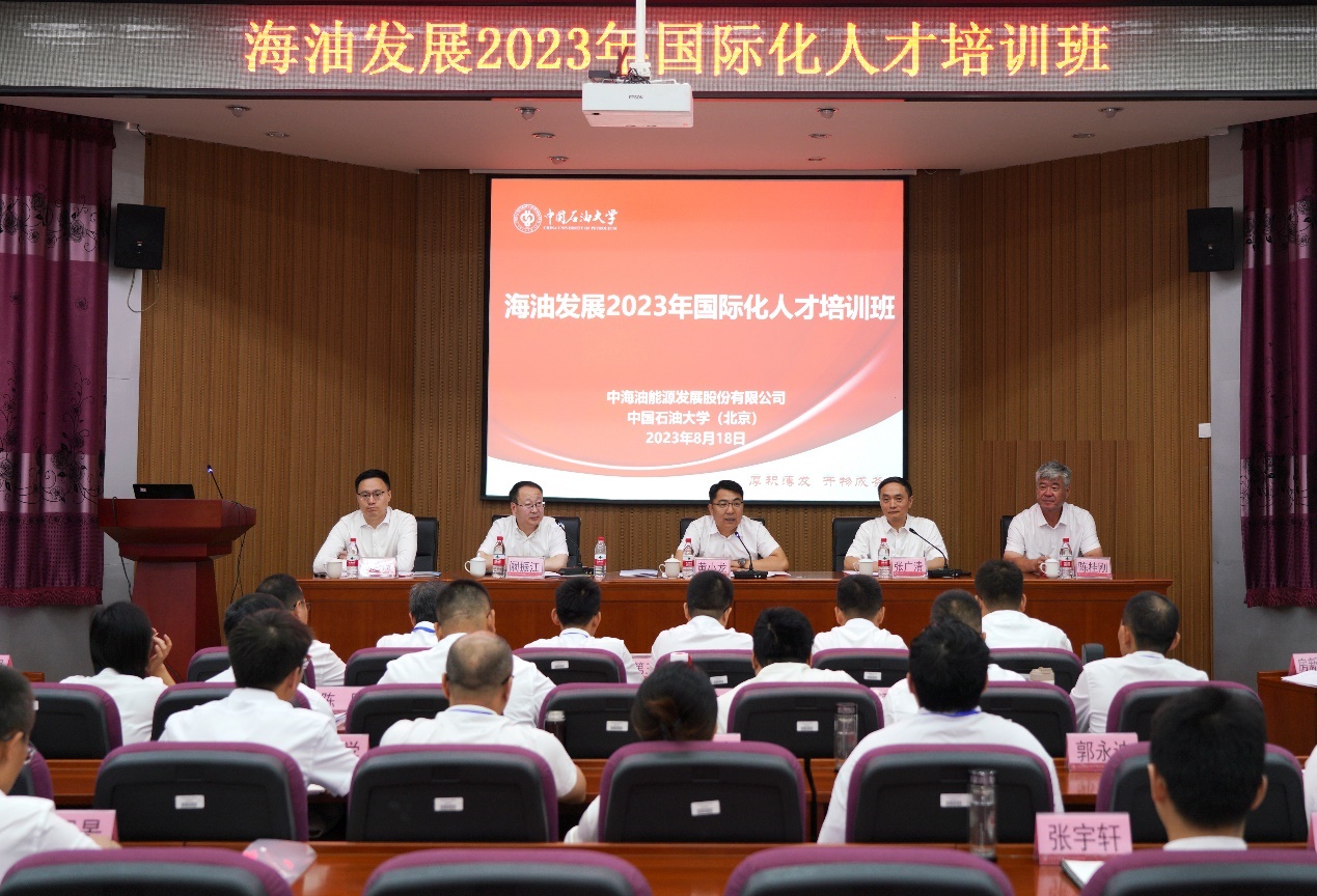 2023年8月18日,我院承办海油发展2023年国际化人才培训班顺利开班。中海油能源发展股份有限公司副总经理黄小龙、awc77万象城官网副校长张广清出席开班典礼并讲话。