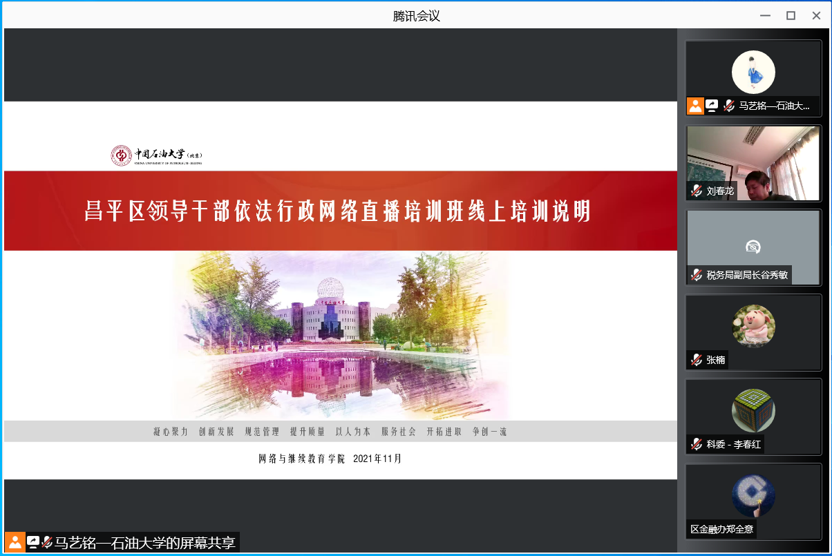 2021年11月10日,由昌平区委组织部、区司法局联合主办,awc77万象城官网具体承办的昌平区2021年领导干部依法行政网络直播培训班首次在线上直播。