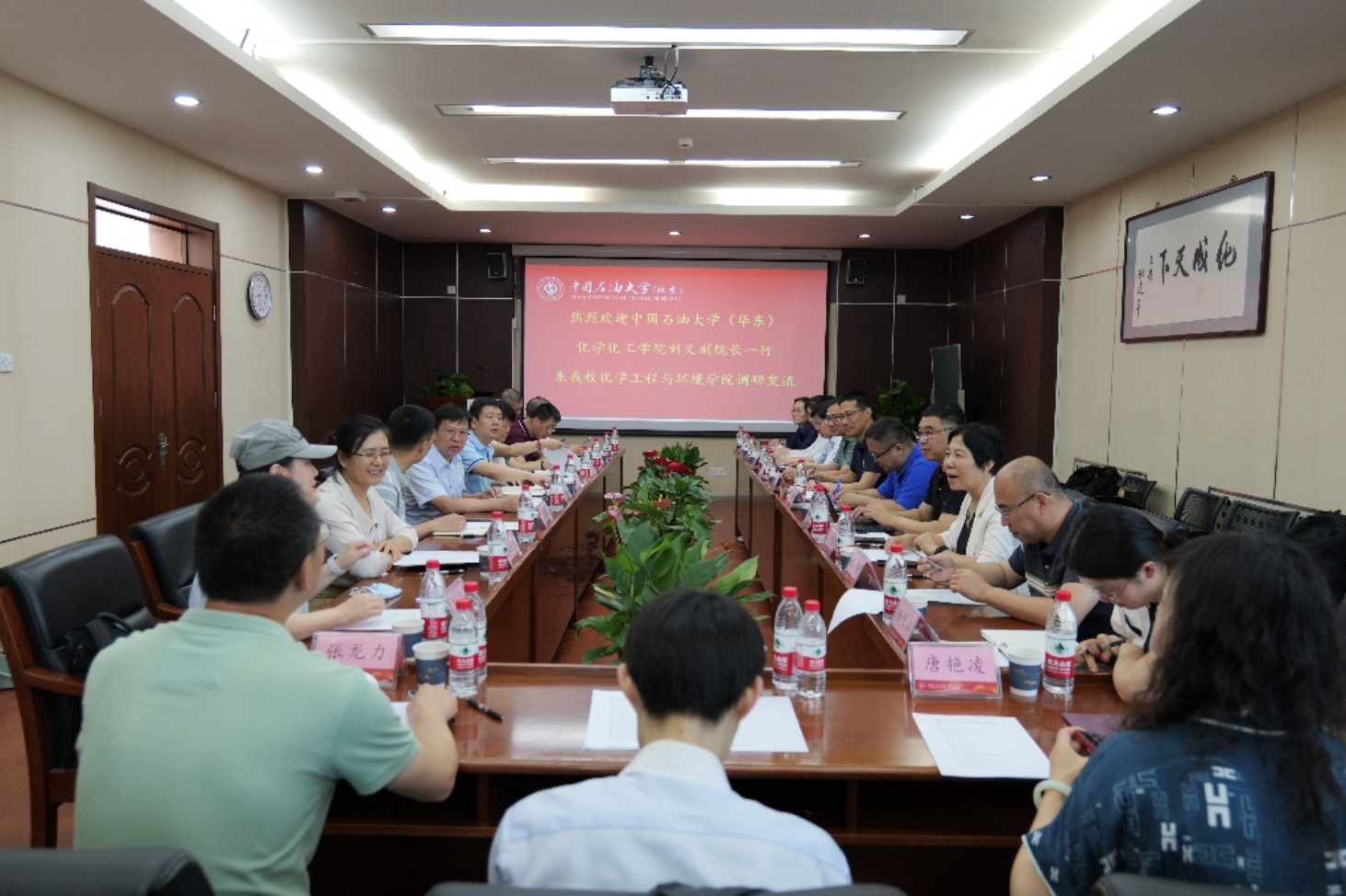 2023年7月3日上午,中国石油大学(华东)化学化工学院教学副院长刘义一行13人赴我院开展本科教学调研,学院本科教学副院长姜桂元、化学工程与工艺专业负责人孟祥海、能源化学工程专业负责人吴志杰、环境科学专业负责人及环境科学与工程系主任王新伟、化学工艺系主任商辉、化学工程系主任刘梦溪、能源与催化工程系主任代小平、实验教学中心主任鄂承林和环境科学与工程系副主任王鑫等参加了调研交流会。