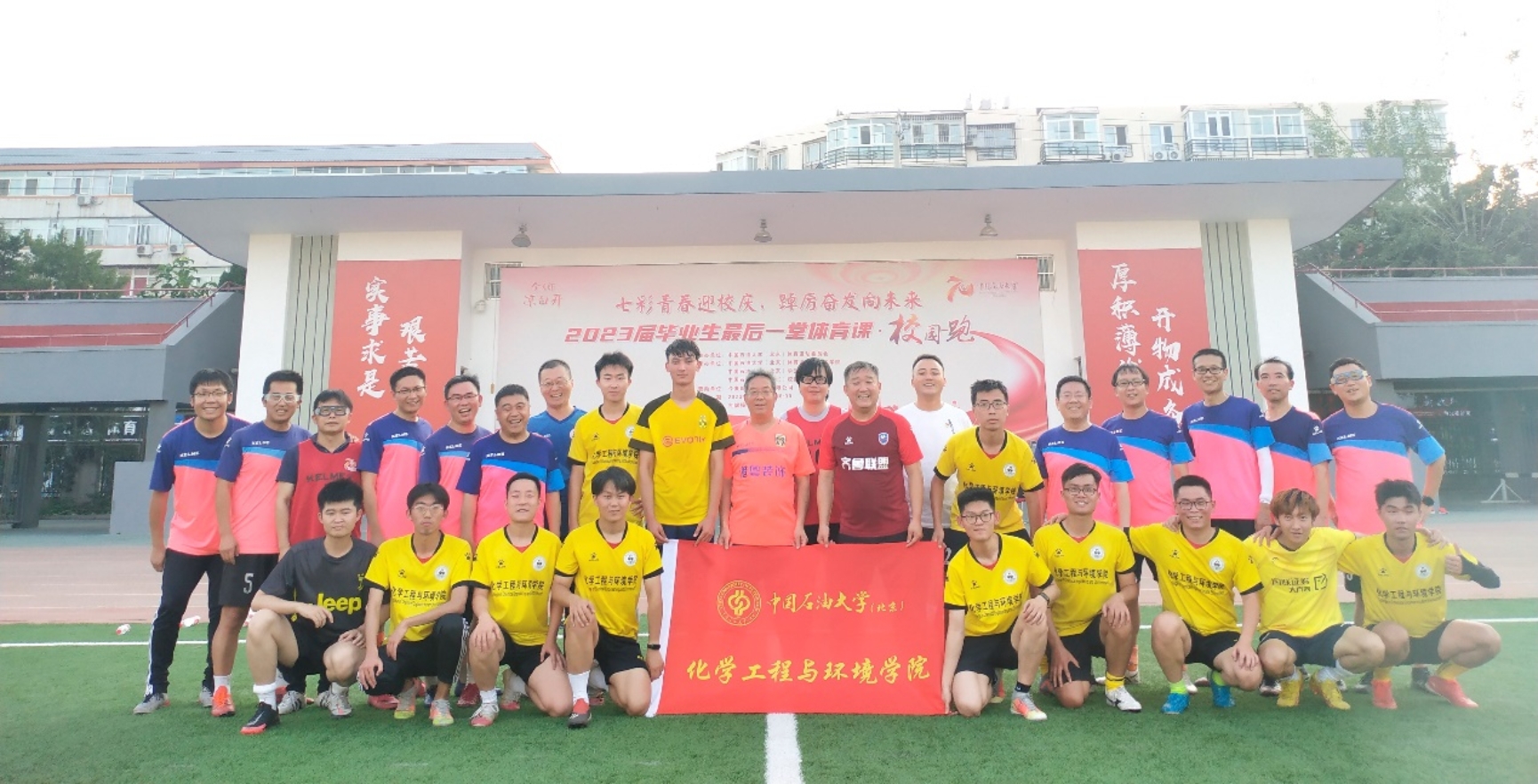 为了继续传承学院的优良传统,2023年6月21日下午化工学院工会如期举办教师欢送毕业生足球友谊赛。教师队由徐春明院士和众多教授组成,学生队由毕业生和各年级足球爱好者组成。