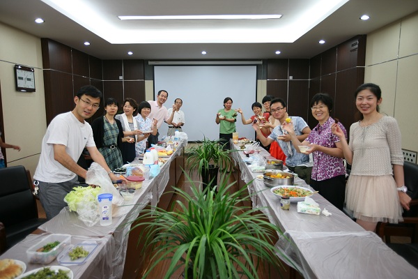 化工学院于2012年6月17日成功举办了美食节活动。我国是一个有着悠久文化传统的国度,尤其是一个美食大国。最近风靡全球的纪录片《舌尖上的中国》使全世界了解了我国饮食文化的精致和源远流长,通过美食反映了我们对待生活、对待家庭,对待社会抱持的态度。炎炎夏日更是品尝百味的好季节,每个爱好美食的人都有自己的烹饪独门绝技,我们身边也不乏这样厨艺高手,化工学院工会为大家搭建了一个平台,美食节爱好者们利用周末时间跑市场、到超市购买原材料,精心设计,自制了甜点、主食、配菜等,融合了中西不同风味的美食达20多个品种,大家还现场亲自学做寿司。品尝着自己亲手制作的食品,大家其乐融融,体现了家的温暖,家的快乐。