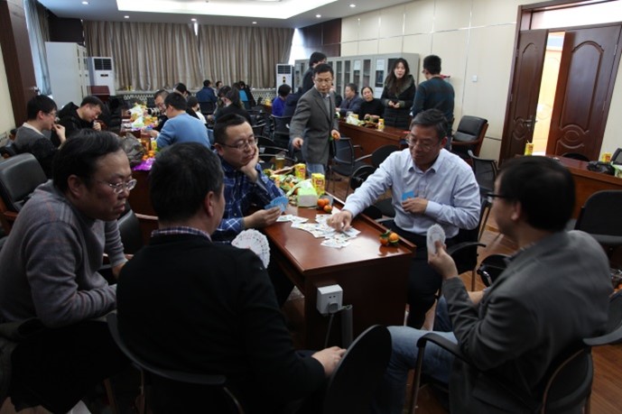 此次茶话会上,进行了2019年退休教师荣休仪式,学院党委书记孙学文为退休教师颁发了荣休纪念品;进行了三十年教龄教师纪念仪式,副院长兼工会主席陈春茂和副院长魏强为三十年教龄教师颁发了纪念证书和纪念品;进行了2019年新入职教师的介绍和交流。在随后的娱乐环节,学院工会为老师们准备了精彩的吉他演奏、激动人心的幸运抽奖、斗智斗勇的扑克牌活动,茶话会现场一直洋溢着欢乐的节日气氛。