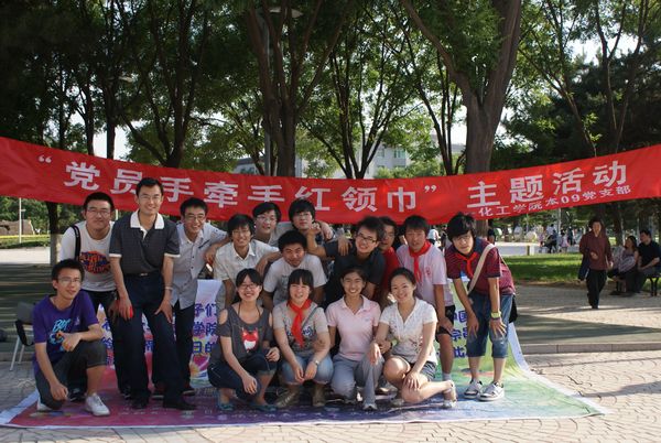 6月1日,国际儿童节到来之际,化工学院09级党支部的全体党员在来到亢山广场,举行了“党员牵手红领巾”主题活动。