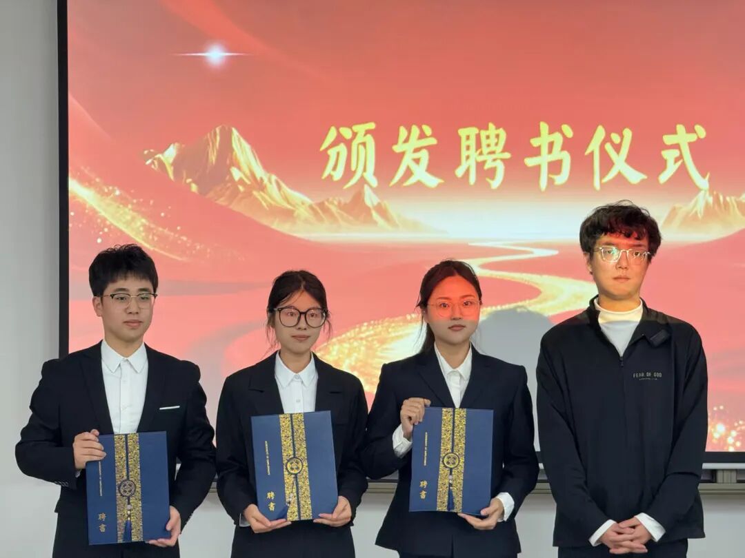awc77万象城官网化学工程与环境学院研究生会指导教师梁硕老师为第二十六届主席团成员颁发聘书。手中的聘书不仅是一份荣誉,更是一份责任,全体受聘人员手持聘书、庄重站立,向在场师生展现了做好研会工作的坚定决心,大会在热烈的掌声中圆满落幕。