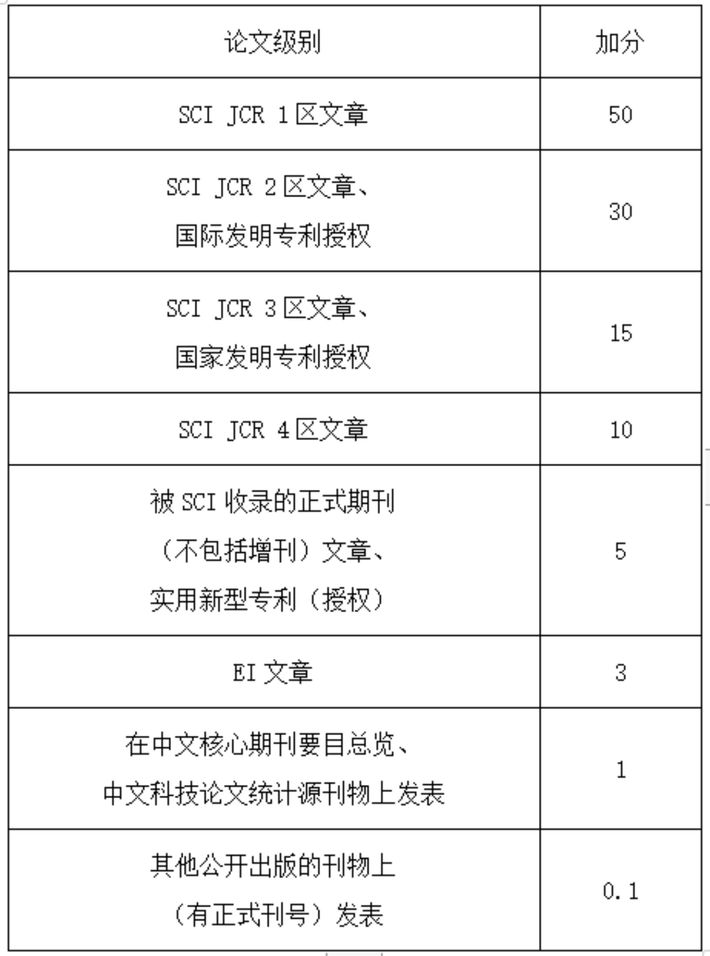(1)发表与本人所学专业及所做论文内容有关的学术论文、获得专利授权、获得软件著作权,分成八档加分,分别为50分、30分、15分、10分、5分、3分、1分、0.1分。