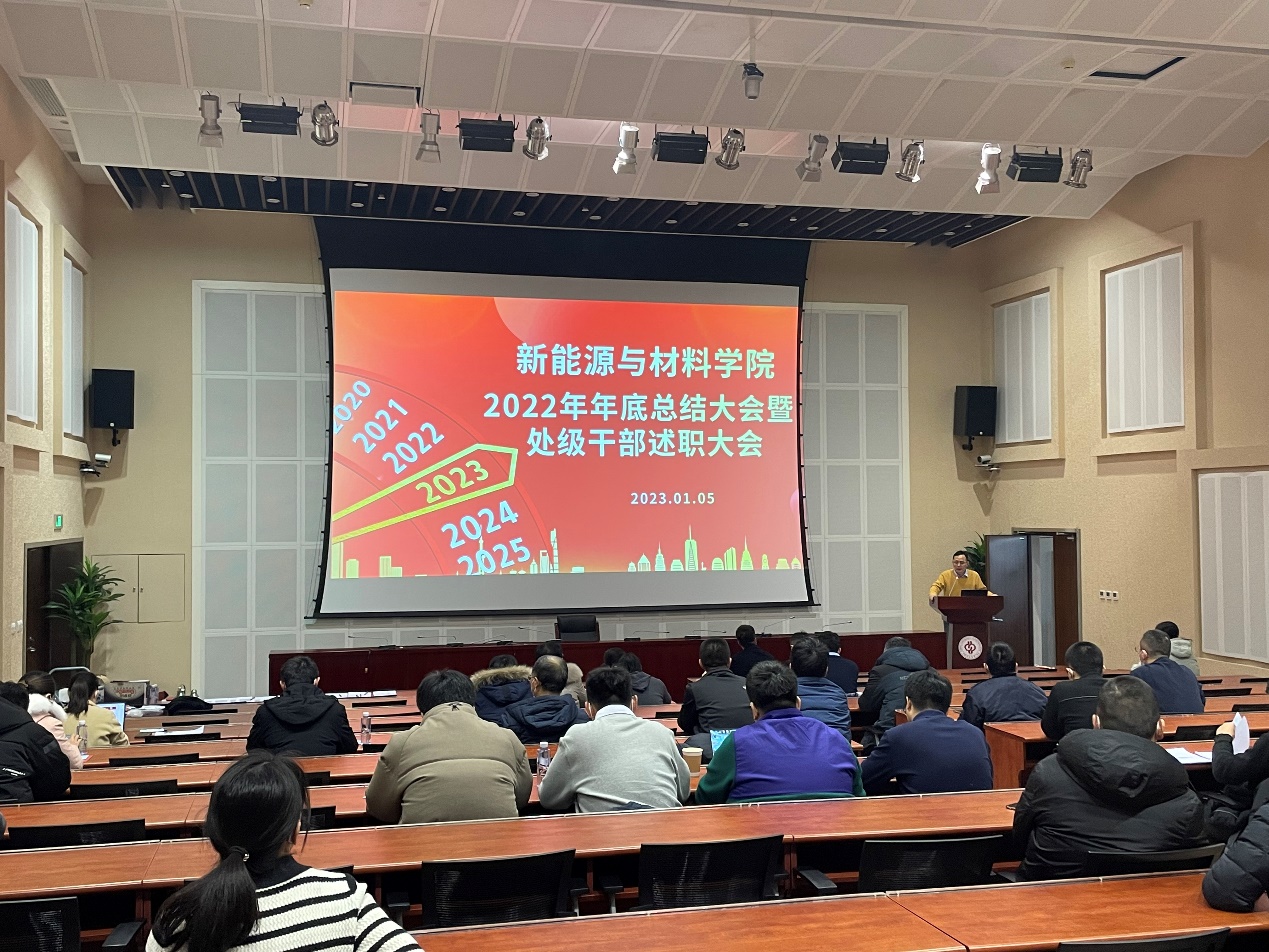 1月5日下午,新能源与材料学院在主楼C308会议室召开2022年年底总结大会暨处级干部述职大会。会议由学院党委书记叶海木主持,采用线下与线上结合的方式进行,学院全体教职工参加会议。