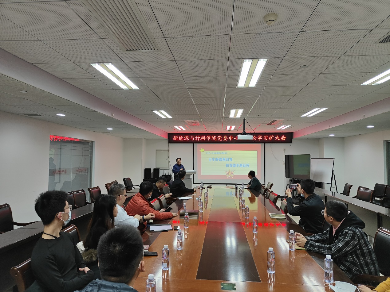 12月1日下午,新能源与材料学院在主楼A417会议室召开党委中心组理论学习扩大会,邀请中石大马克思主义副院长吴建伟对十九届六中全会精神进行解读。会议由学院党委书记叶海木主持,学院党委中心组成员、各教工及学生党支部书记参加了学习会。