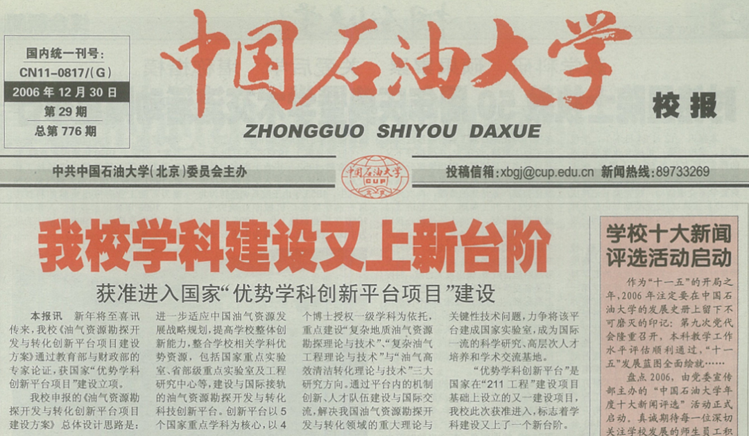 “优势学科创新平台”是国家在“211工程”建设项目基础上设立的又一建设项目。2006年12月,中国石油大学《油气资源勘探开发与转化创新平台项目建设方案》通过教育部与财务部的专家论证,获国家“优势学科创新平台项目”建设立项,标志着学校学科建设又上了一个新的台阶。