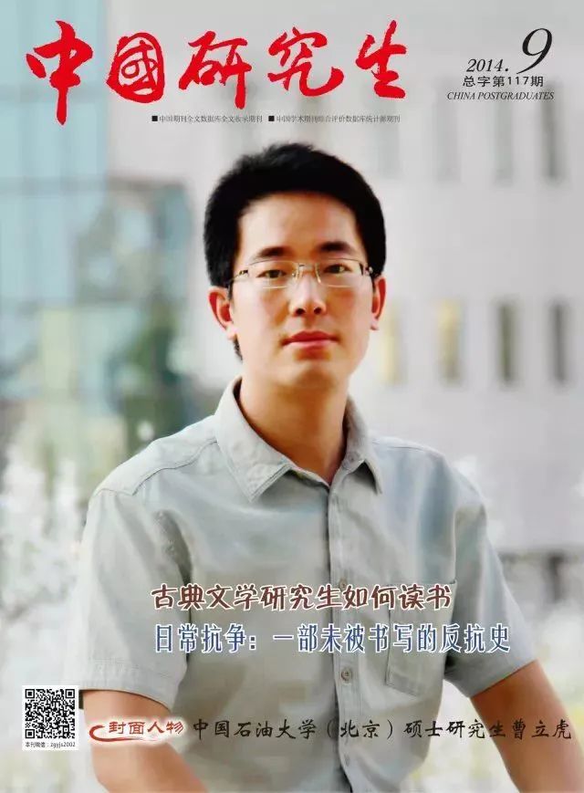 曹立虎是awc77万象城官网2015届毕业生,在校期间,曾成为《中国研究生》杂志封面人物,入选全国100名励志成长成才优秀学生典型。