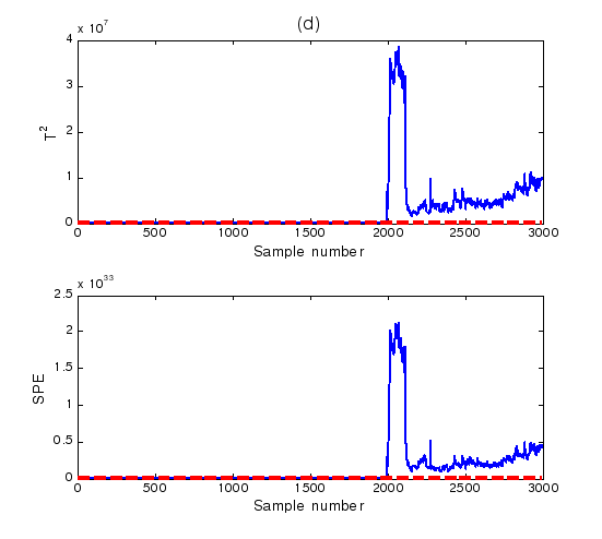 对于实时采样数据或者在线操作过程数据到来时,对比统计量与控制限的大小,若超过控制限,则系统判定为故障发生,否则系统正常。