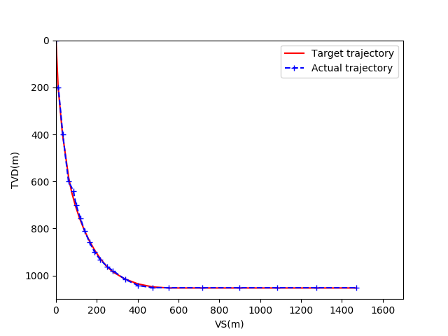 可以看出,在收敛后两模型的跟踪效果基本一致,均能完成对预设井眼轨道的跟踪任务。
