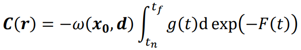 在方程式中,F(s)与f(s)分别为三维空间中体积密度函数与原函数在光线发射方向d上的梯度向量。