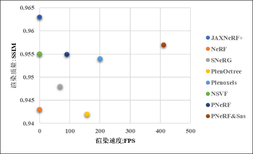 其次,对比渲染时间性能,综合渲染质量对PNeRF结合六轴曲面模型的性能进行评估。如图5所示。