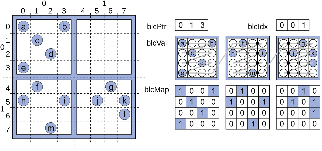 图2. mBSR格式的SpGEMM计算过程