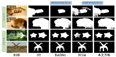 图1给出了图像和视频显著目标检测方法在静态图像和视频序列上的可视化对比结果。 图像显著目标检测算法虽然能够定位静态图像中的显著目标,并给出清晰的目标边界,然而不具备视频理解能力,因而会产生前景误判问题。 视频序列的内容是小狗与玩具盒,由于缺乏时空信息,图像显著目标检测算法BASNet错误地将玩具盒作为显著目标,而视频显著目标检测方法能够基于视频内容给出合理的预测结果。