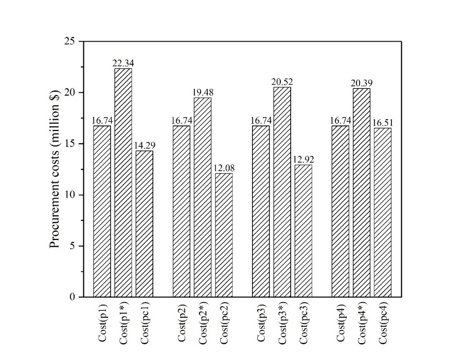 图5.案例1-4的原油采购成本比较