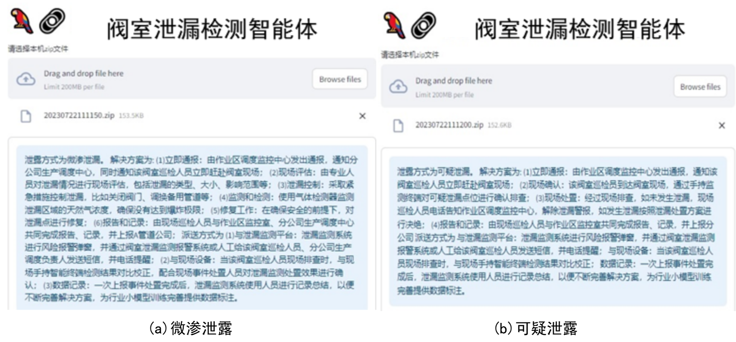 (2)针对油气生产领域细分场景,构建了基于AI听诊和红外测温结合的泄漏检测行业小模型和基于RAG的天然气阀室泄漏知识问答工具;