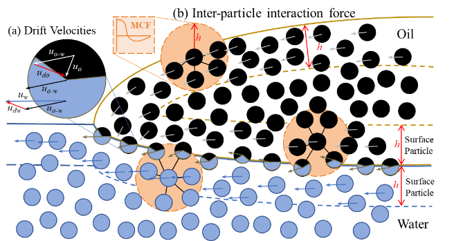 基于物理过程的多相流模拟在电影特效、工业生产、灾难仿真等领域有重要研究价值。随着油气资源广泛开采运输和开发利用,穿越河流的输油管道泄漏会对生物和自然环境造成极大损害。目前对原油污染流体模拟与分析已进行诸多研究工作,但是大多数聚焦于海洋原油污染和土壤原油污染,对河流水域原油泄漏和扩散过程研究较少。准确和高效地解决原油在水面的模拟问题具有重要意义。