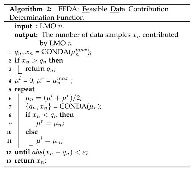 如图1所示,我们考虑了一个分层联邦学习框架,包括一个中心节点、多个边缘节点和多个数据拥有者。中心节点负责发布联邦学习任务和总奖励以吸引感兴趣的边缘节点加入并获得奖励。边缘节点根据任务的要求,选择合适的数据样本并参与到联邦学习的训练当中。如果边缘节点缺少训练数据,它们可以发布数据收集任务,吸引数据拥有者提供数据并给予奖励。整体框架分为两层,旨在保护参与者的数据隐私并发挥联邦学习的优势。