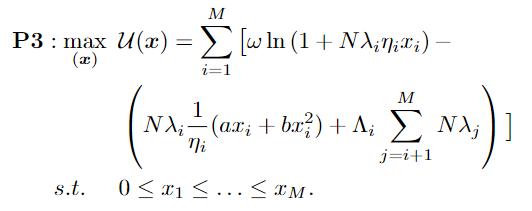 在弱不完全信息情景中,本地模型拥有者的类型属于私人信息,任务发布者不知道具体的本地模型拥有者的类型。为了防止本地模型拥有者为了获得更高的效用而想隐瞒自己的类型,我们利用契约理论来解决这个激励不对称问题。通过契约理论,我们可以将原始优化问题简化为以下形式: