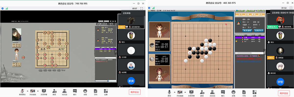 比赛正式开始后,视频直播间中热闹非凡,竞技赛场看点不断。透过直播屏幕,大家看到了久违的老同学,看到了参赛选手和父母亲人一起出镜的温暖瞬间,一个个“加油”的弹幕传递着关心和鼓励。软件工程系教师王燕接连参加了开合跳与跳绳项目,与参赛学生一同上演师生同台竞技的“好戏”。两个棋牌类趣味比赛利用QQ游戏平台进行,参赛选手们斗智斗勇、过关斩将,积极竞争学院“棋王”称号。