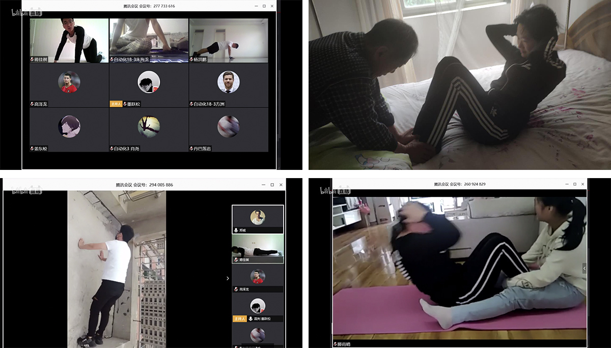 在疫情防控特殊时期,为引导学生丰富居家生活、做好健身锻炼、实施科学防疫,4月16日至18日,信息科学与工程学院组织举办了主题为“‘云’运动,‘信’战‘疫’”的线上运动会,设立仰卧举腿、深蹲、俯卧撑、仰卧起坐、开合跳、平板支撑、跳绳、俯卧撑接力、仰卧起坐接力9个竞技比赛项目以及象棋和五子棋2个趣味比赛项目。运动会分为初赛和决赛,初赛通过视频投稿的方式进行预选,决赛依托腾讯会议平台开设各项目比赛的分会场,并利用“哔哩哔哩”平台进行全程直播。
