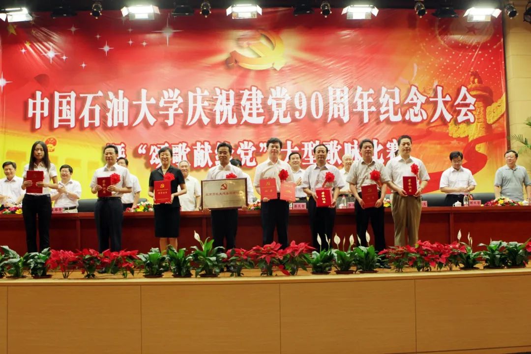 90年沧桑巨变,90年铸就辉煌。2011年6月30日,在中国共产党迎来九十华诞之际,学校隆重召开庆祝大会,重温党的光荣历史,讴歌党的光辉业绩。新党员庄严宣誓,北京市和北京高校先进集体和优秀个人、学校先进党支部和优秀共产党员接受表彰,18支代表队演唱《没有共产党就没有新中国》《走向复兴》《我为祖国献石油》等经典红歌,展现了中石大党员干部对党忠诚、信念如磐的政治品格,以及中石大师生奋发图强为党的事业不懈奋斗的担当精神。
