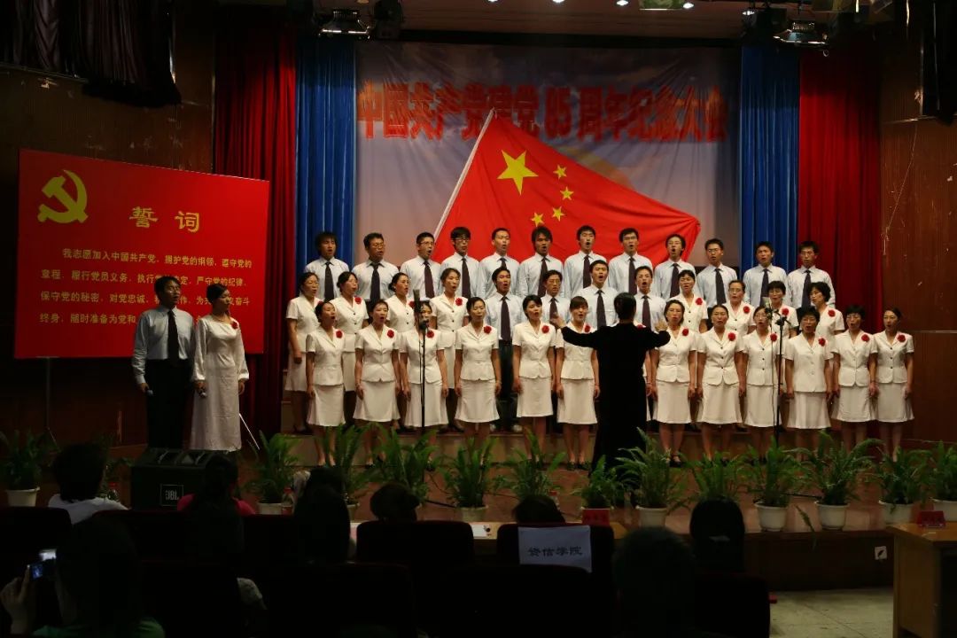为迎接建党八十五周年,2006年6月29日,我校党员齐聚科学会堂参加庆祝大会。全体新党员面对党旗庄严宣誓,同时,获得北京市优秀基层党组织的资信学院地科系党支部等受到大会表彰。教职工“颂歌献给党”大型歌咏比赛中,教职工用嘹亮的歌声、精彩的演出展示内心的喜悦,表达对党的生日的深深祝福。