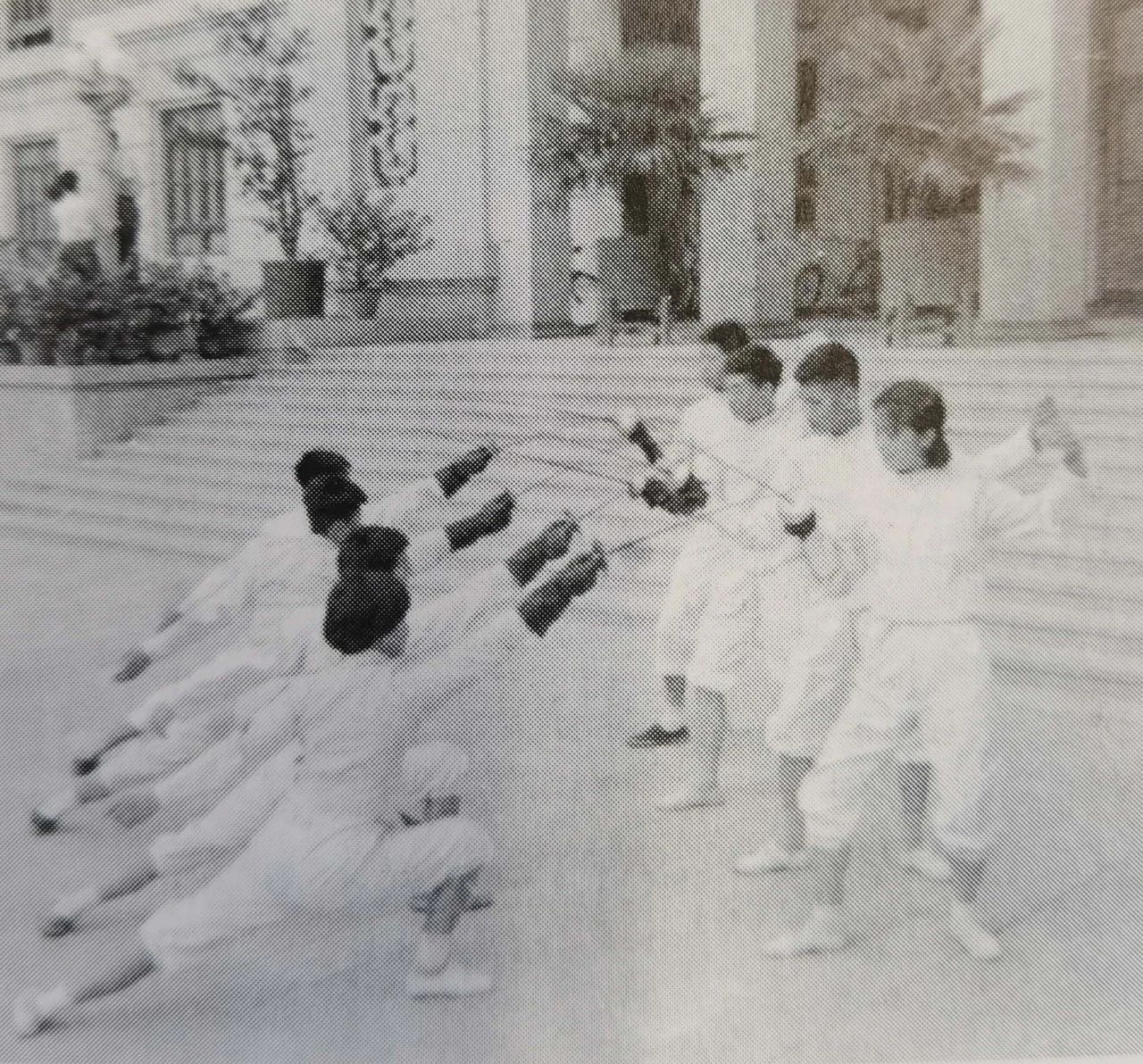 1961年在主楼前,击剑队练习轻剑