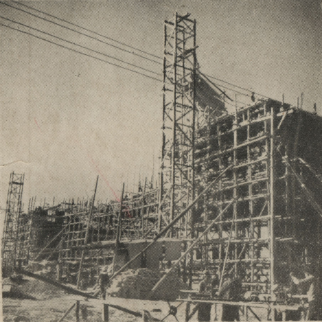 “筹备处副主任贾皞分工负责基建工作,任务十分艰巨。1953年4月,石油工程系教职工到建校的九间房村校址参观时,还只是看到几排施工工人住的工棚,学校的建筑物一点儿也看不见,正在打地基。距当年开学只有五个多月的时间,怎么来克服困难?筹备处在贾皞同志领导下,采取了多项正确的应急措施。集中人力、物力、财力,保障一栋学生宿舍楼(定名为工字楼)尽快先建成,用作师生员工居住,行政教学办公以及图书阅览和医疗。总之,就以这样一些简易快速有效的措施,保障了开学时教学、生活的基本需要。”(方华灿)