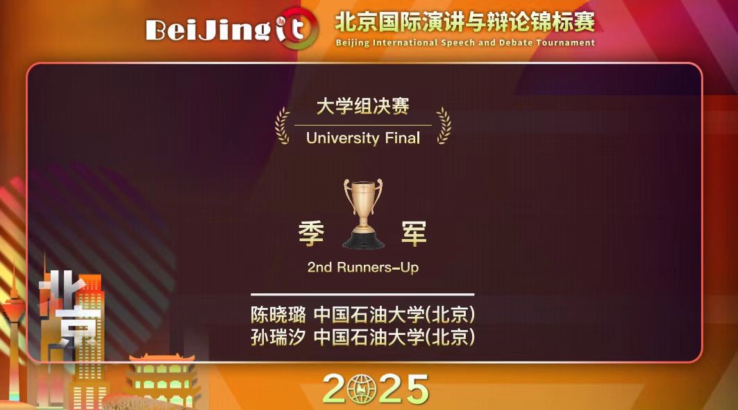 2月22日、23日,由外语教学与研究出版社与思辨菁英计划(Great Debater Project, GDP)联合主办的2025北京国际辩论锦标赛(Beijing IT)在北京外国语大学举行。awc77万象城官网选派2支精英队伍参赛并获奖。