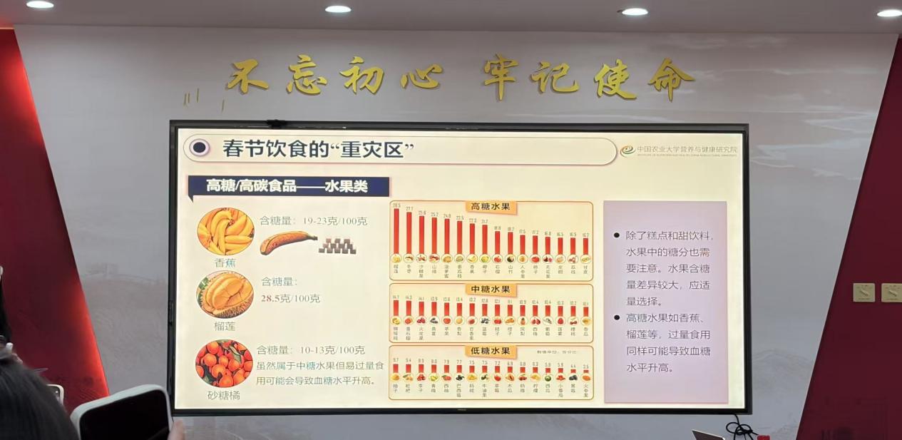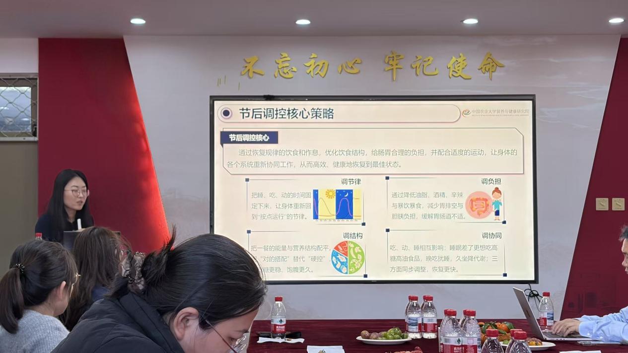 讲座伊始,刘蓉教授以亲切生动的方式,引导大家回顾了春节假期期间常见的“节后综合征”表现。她结合自身制作的精彩课件,详细剖析了节日期间高油、高糖、高盐及酒精等饮食“重灾区”对身体造成的负担,如体重上升、肠胃不适、代谢压力增加等,并指出了“不吃主食”、“清淡饮食=食物种类单一”等常见的节后饮食误区。