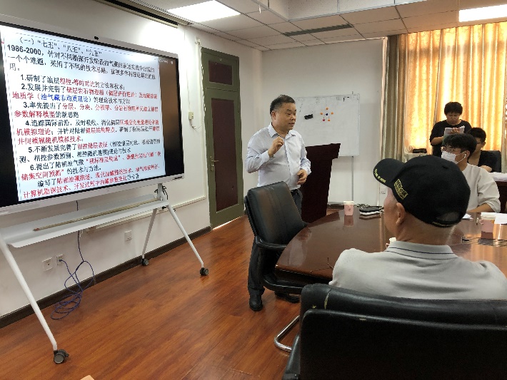 接着在王志章教授的学术报告环节,王教授概述了“学习、认知、自立、拓展、升华、突破、开花、结果”的学习和研究历程,梳理了三十五年的油藏地质领域研究的主要成果与收获,简单介绍了研究过程中公开出版的专著30部及国家级、省部级科技进步奖30项,梳理了对油气藏研究的目标、模式、手段、前沿性及实用性、工作的方法及做人做事等的启示和思考,最后总结了三十五年来形成的油气地质评价与开发独有的8个理论及观点、研制的10项具有独立知识产权的专有技术等。