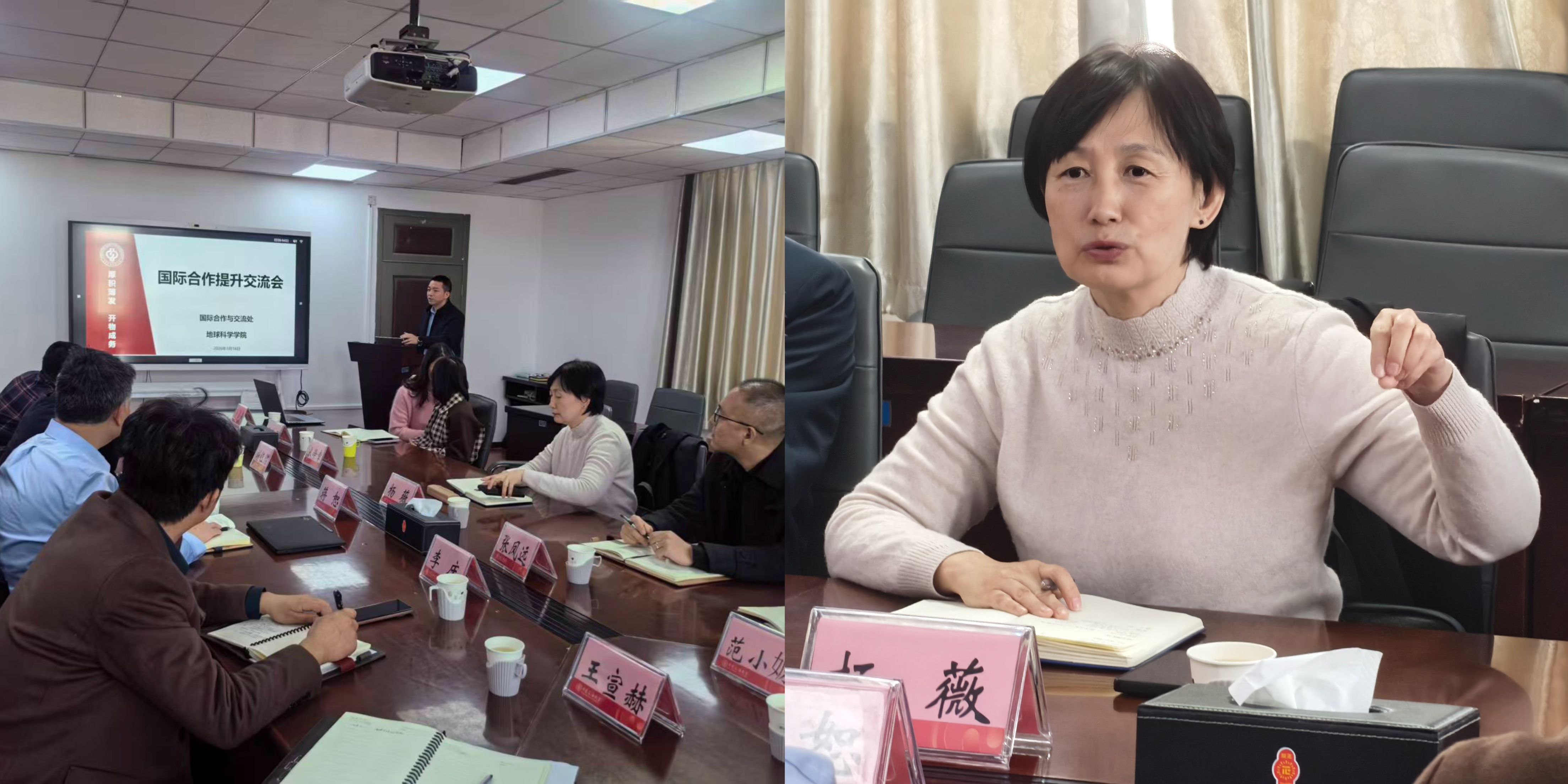 双方在坦诚务实的交流中达成多项共识。地学院感谢国际处主动上门“指点迷津”,表示将在“十五五”规划中细化落实国际化工作,推动国际化工作再上新台阶。国际处表示将继续做好政策解读与支持服务,与学院携手打造更具活力的国际合作格局。
