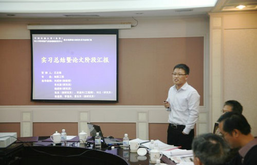 2011年11月29日下午,中国石油大学与国土资源部油气资源战略研究中心(以下简称油气中心)共建的第62个实习工作站的3名专业学位硕士生企业实习答辩在油气中心举行。油气中心副主任车长波、地球科学学院院长柳广弟、油气中心战略室主任杨虎林、学生导师刘成林以及6名现场专家一并出席。