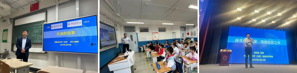 让专家走进课堂,让科普走向大众。在第56个世界地球日到来之际,我院岳大力教授、姜福杰教授、刘钰铭教授分别到北京市十一学校、北京市西城区志成小学、北京市八一中学开展地学科普走进校园活动,为460多名小初高中年级的学生开启了一场“探寻石油资源、领略地质之美”和“石油的故事”的地学科普讲座。