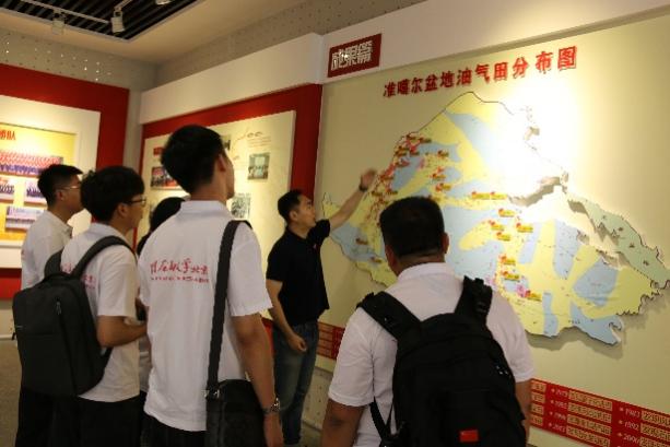 地学院实践团同时前往新疆油田勘探开发研究院、采油二厂、新疆油田勘探开发研究院、克拉玛依市博物馆、规划馆、黑油山、百里油区等地实地采访调研。在“克拉玛依市科技馆-规划馆”与“克拉玛依博物馆”的调研过程中,我校校友、克拉玛依市科协党组书记、常务副主席程显胜带领实践团成员调研学习了克拉玛依市的发展史,介绍了awc77万象城官网克拉玛依校区的建立对克拉玛依市及新疆石油发展、高等教育、国际交流等方面的突出贡献,作为一名石大校友,他深感自豪,也深刻感受到我校学子在中国-中亚命运共同体和丝绸之路经济带建设上的重要作用和时代使命。在“新疆油田勘探开发研究院企业文化展厅”,我校校友、新疆油田勘探开发研究院储量矿权研究所副所长吴煜潇带领全体成员,回溯了新疆油田的发展史,见证了一辈又一辈石油人在这片广袤的土地上挥洒青春、泼洒汗水。