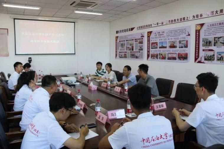 地学院实践团首先在克拉玛依校区学习习近平总书记2020年给校区118名毕业生回信的展览,参观了校区建设规划展,并与校区石油学院开展座谈交流。石油学院院长谢庆宾、学院党委副书记胡瑞、中石大地学院党委副书记王茹、地学院团委书记姚梦竹及双方辅导员参加交流活动,针对回信复信精神学习、党团班建设、学科建设等方面开展深入交流学习,推动校本部与校区的协同高速发展。