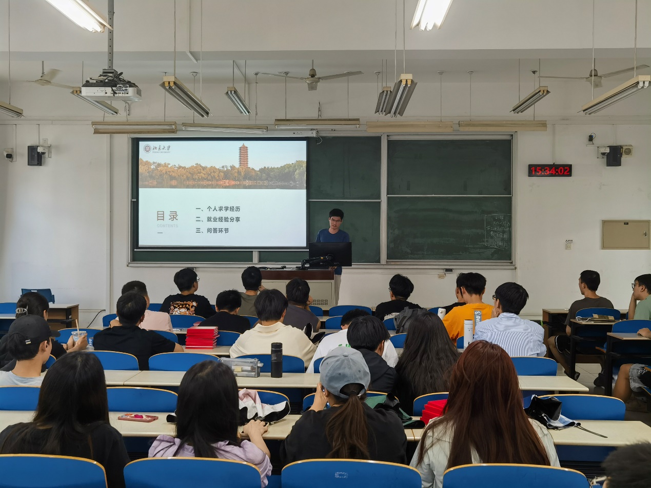 2023年6月15日,中石大地球科学学院在第三教学楼111教室成功举办“校友求学与就业心得分享会”,学院2014级本科生黄保有返校进行分享,地球科学学院2020级、2021级本科生参与了此次分享会。