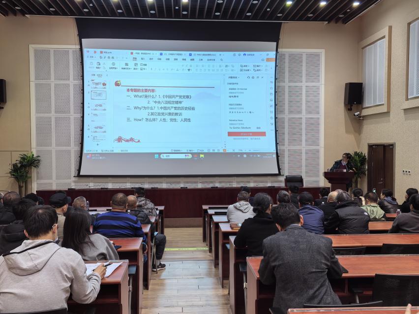 会上,曹培强教授围绕“深入贯彻中央八项规定精神学习教育”开展集中学习与研讨,从《中国共产党章程》、中央八项规定精神、中国共产党历史经验、以及“人性党性人民性”四方面开展学习,带领全体党员同志系统学习中央八项规定的核心要义,阐释党中央关于作风建设的战略部署和核心要求。