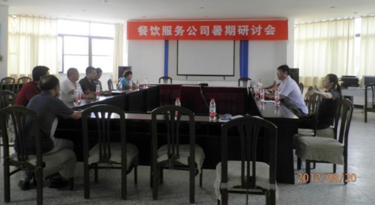 2012年8月20日,餐饮服务公司在南戴河科学实验站召开餐饮工作暑期研讨会,后勤管理处陈桂刚处长、刘海燕副处长、公司正副经理及各餐厅负责人参加了此次研讨会。会议由餐饮服务公司经理王德杰主持。