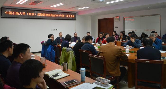 3月3日上午,石大后勤管理委员会在主楼A1323会议室召开了2017年第一次工作会,副校级干部鲍志东和后勤管理委员会成员单位的负责人参加了会议。