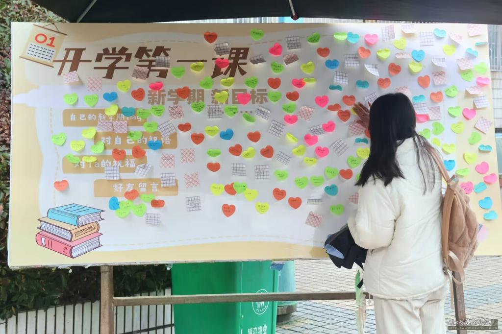 下午四点,活动正式开始,同学们纷纷驻足,沉思良久,欣然拿起笔,在五彩斑斓的便利贴上,写上了自己的新年愿望,纸虽小,但心中的那愿望,已经随着春天的脚步在心里生根发芽!