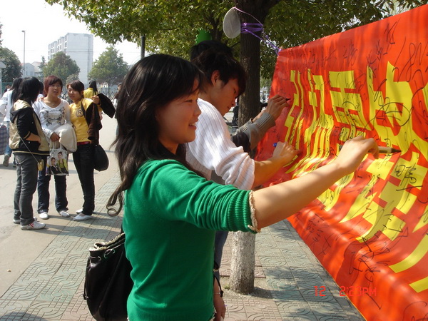 2008年3月12 日植树节,kaiyun云开登录入口团总支实践部组织各班学生在东区校门口举行“弘扬雷锋精神,倡导环保新风”的植树节签名活动。活动受到院党委程书记、院团委梅书记的高度关注和积极参入并对活动给予高度评价。