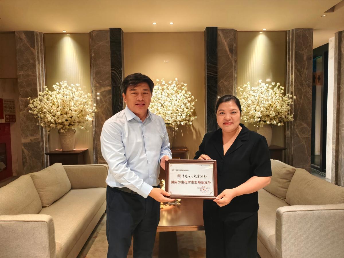 在元魁汉语培训学校,韩克飞一行看望了新录取至中石大的越南留学生,与学校负责人会谈,感谢该校向中石大输送优秀学生,并代表中石大向该校授予了“国际学生优质生源基地”证书。